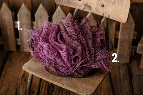 Hand-colored jute layer. The dyeing technique used makes the color unevenly distributed, which gives it an additional structure and means that there are no two 100% identical blankets. Perfect as a layer.