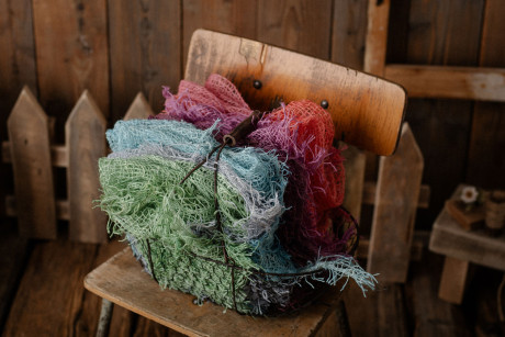 Hand-colored jute layer. The dyeing technique used makes the color unevenly distributed, which gives it an additional structure and means that there are no two 100% identical blankets. Perfect as a layer.