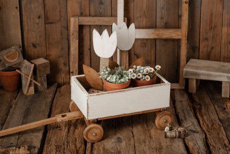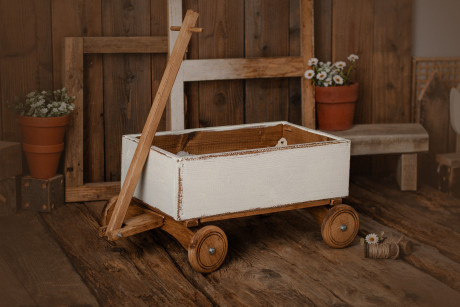 Carrito de madera para sesiones de fotos. Totalmente funcional (las ruedas giran).
