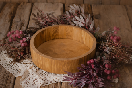 Encantador cuenco de madera de roble de alta calidad. Perfecto para recién nacidos y bebés sentados. Ideal para sesiones de fotos.