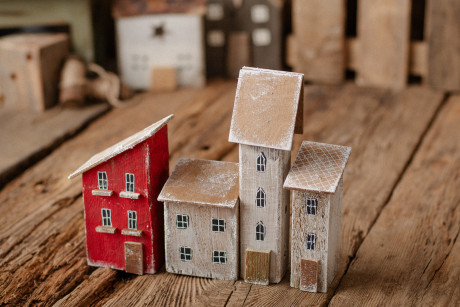 Un ensemble de trois charmantes maisons en bois faites à la main, parfaites comme élément décoratif pour les séances photo et les intérieurs. Chaque maison est soigneusement fabriquée à partir de bois recyclé et peinte à la main dans notre atelier, ce qui les rend absolument uniques. Dimensions :
