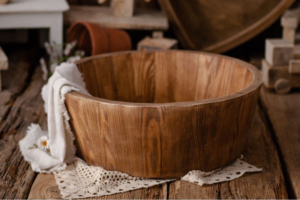 Incantevole ciotola in legno, perfetta per neonati e bambini seduti.