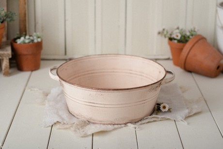 Metalowa balia o średnicy 39cm.